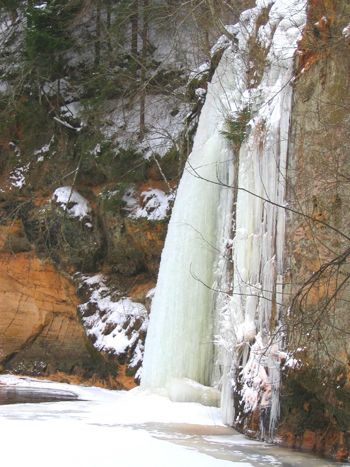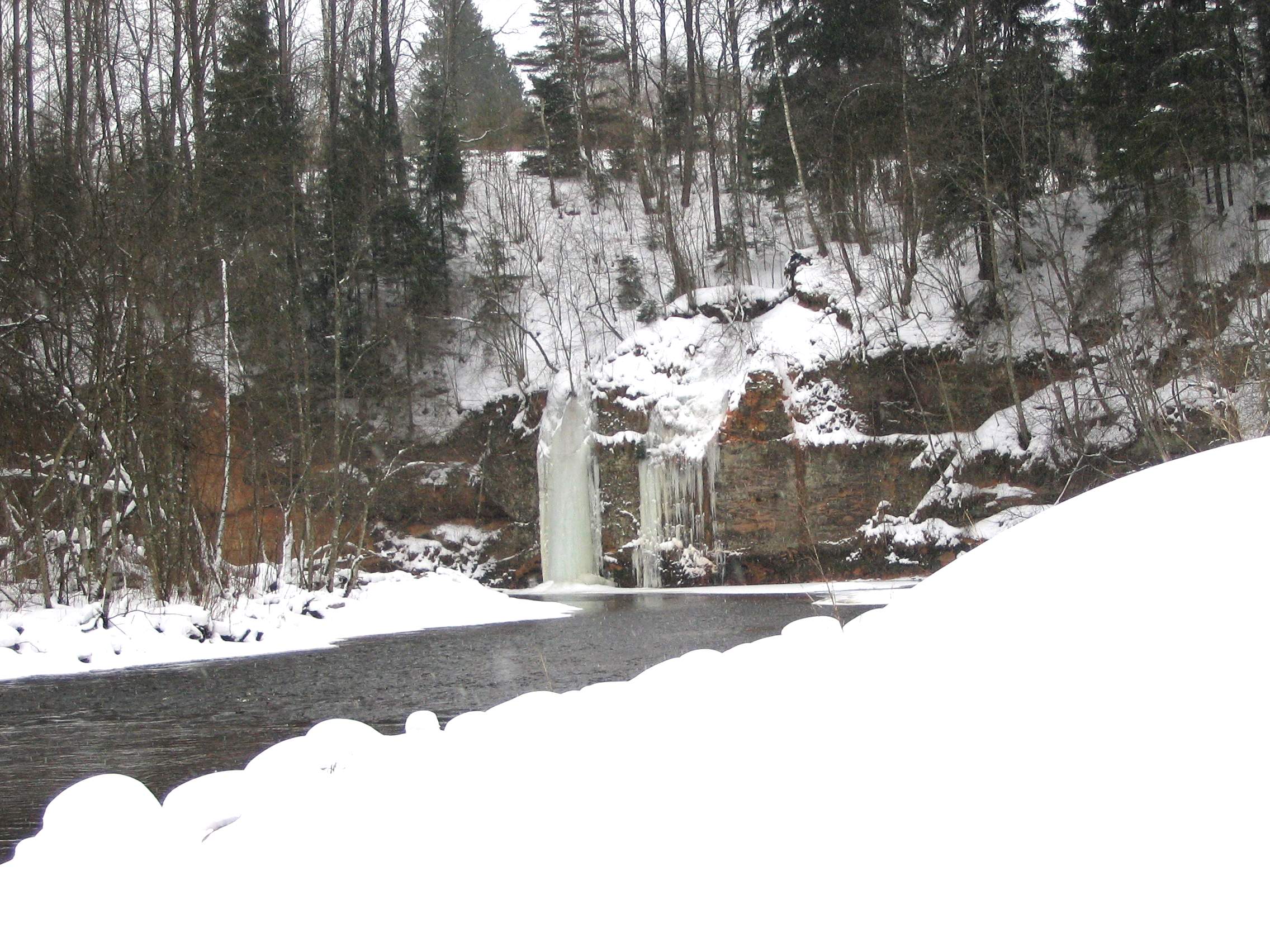 Leduskritumi. Brasla pie aizsprosta. Šis leduskritums man arī mīļš. Tāds varens un dažu gadu ar mežģīņu sedziņu blakus noklātu.