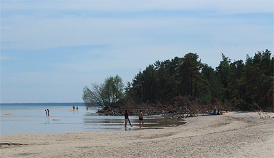 Kolkas rags un Kolkas baznīca. Kolkas raga fotogrāfijas 2007. gada jūnijā, kad raga liča piekraste jau ir izskalota līdz pat mežam. 1995. gadā šeit bija plaša pludmale.