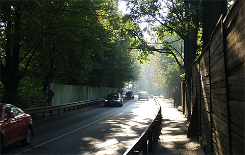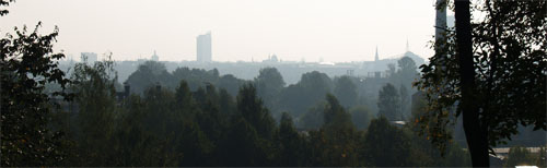 Dzegužkalns, tinies rīta dūmakā gaida aiz pagrieziena ar čabošām lapām. 2010. septembris