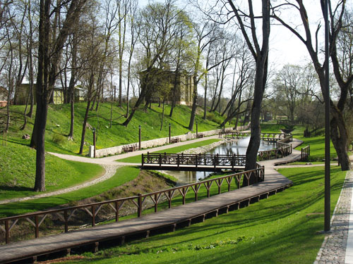 Atjaunotais, uzlabotais bijušās Kuldīgas pils parks. Džungļi beidzot izcirsti un izveidota jauna pastaigu vieta.